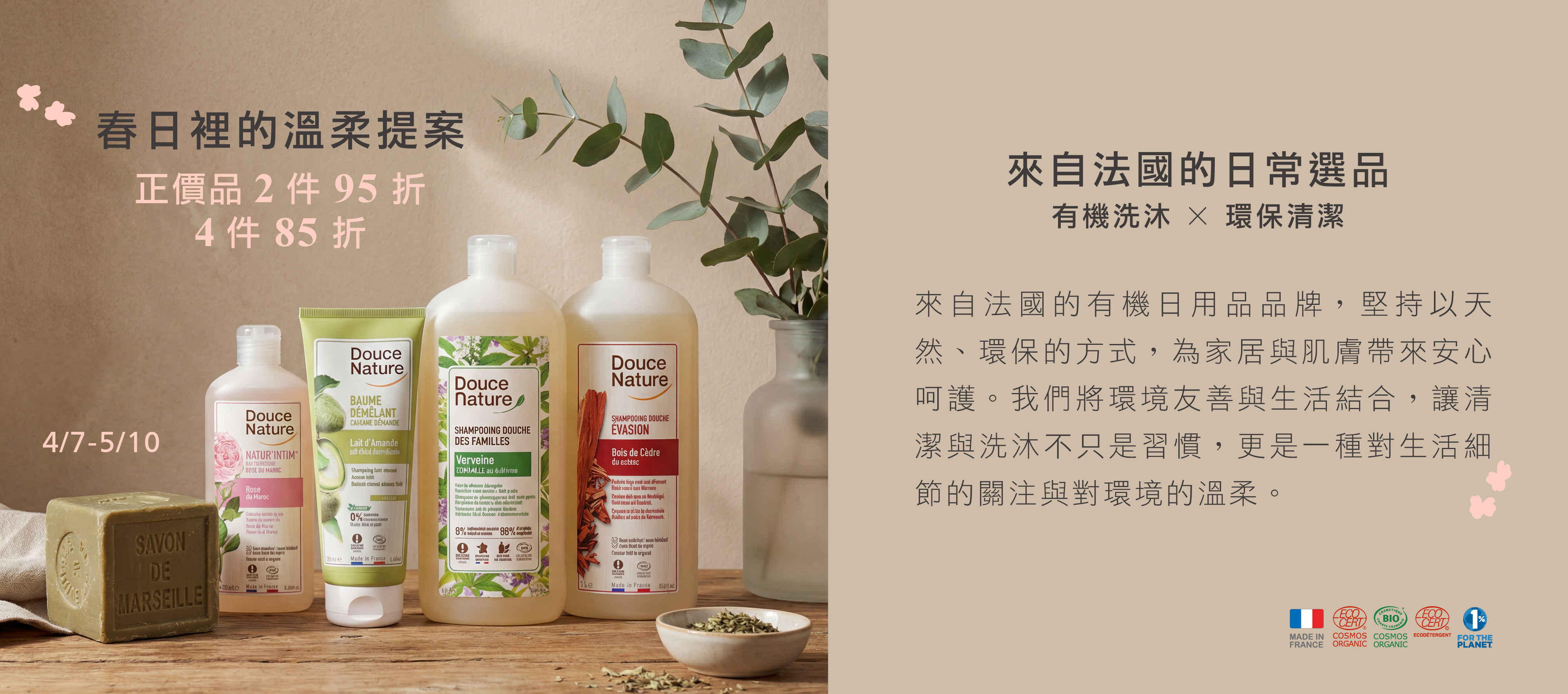 4/7-5/10 春日提案活動 正價單品2件95折 4件85折